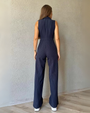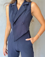 Aarna Navy Pinstripe Co-ord Set | Sleeveless Blazer & Pants for Women