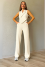 Aarna Off White Pinstripe Co-ord Set | Sleeveless Blazer & Pants for Women