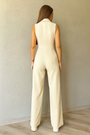 - Design: Sleeveless asymmetric blazer top paired with matching high-waist pinstripe pants