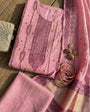 Blush Rose and Plum Cotton Jacquard Zari Unstitched Suit Set HeritageBloom