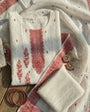 A soft and graceful unstitched suit set designed for festive wear, small gatherings, daytime functions, and traditional occasions. The ivory base paired with subtle red jacquard zari and thread work gives a refined look without feeling heavy. Pure cotton fabric keeps it breathable and comfortable for long hours, making it suitable for warm weather wear.